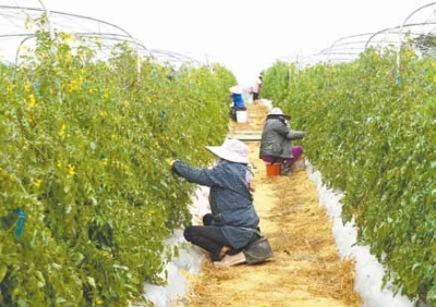 工人们正在采摘圣女果。