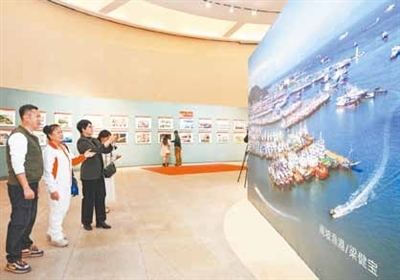 展览围绕“绿能兴城·产业强基”等七大主题篇章展开,通过160余幅作品集中呈现2025年我市在产业发展、生态建设、文化传承等方面的成果。画面中既有临港工业的蓬勃气象、海上风电集群的壮美景象,也有红树林的静谧生态与耕海牧渔的丰收图景;既见“数字政府”的高效服务,也见特色民俗的鲜活传承。观众关宇杰分享道:“作品画面生动、故事性强,开渔节、赛龙舟等场景特别有意思,让我对阳江的发展有了更深入的了解,非常值得一看!”