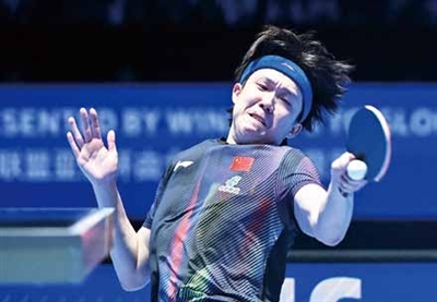 2月8日,王楚钦在比赛中回球。