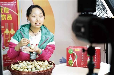 左图:主播正在直播间线上销售慈姑。袁荣泽 摄