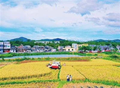 ←↑去年新梨村晚造水稻,茹嘉励引领群众种植的增香优高端优质稻迎来收成。