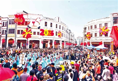 穿着古装迎春行大运的队伍经过南恩路。司徒攀 摄