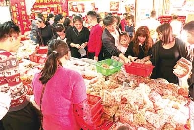 商场阳江特产专区,围满了购物人群。袁子当 摄