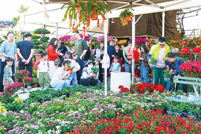 2月15日,市民在勤力牛迎春花市选购心仪的年花。梁文栋 摄