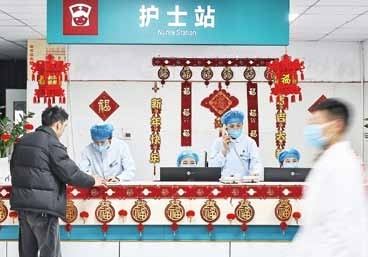 图①在浙江省嘉兴市南湖区,海警医院急诊医学科护士为患者服务。