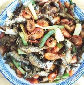 煎焖鱼仔,以马口、溪石斑、勾嘴等小河鱼为主,肉质清甜、骨刺少。无需去鱼鳞,只需取出内脏,清洗后抛盐(用适量盐腌制),热锅倒入花生油,再将河鱼仔逐条放入锅中摆整齐,用文火煎制。于烹饪高手而言,煎河鱼仔无需使用锅铲,仅凭一双木筷即可,夹起鱼身轻轻翻转,鱼皮没有丝毫破损,鱼身保持完整。而且,他们对烹饪时间的估算精准到秒,略微观察,便知河鱼仔是否足够火候。等河鱼仔煎至两面金黄均匀,将切碎的姜、蒜、葱段铺在鱼上,再把农家黑豆豉兑水,用筷子搅至酱油色后倒进锅中,顿时呲呲作响,香烟氤氲。继续保持文火小炖,但必须掌握时间。时间太短,鱼不够入味;时间太长,鱼肉会烂。衡量一盆煎焖河鱼仔是否成功,除了看其色泽是否金黄,还要看味道是否恰到好处,能否整条夹起而不断,入口时是否能清晰感受到豆豉、蒜、姜交织的鲜甜。在塘口镇,这道菜是厨师入门必须掌握的基础技艺。
