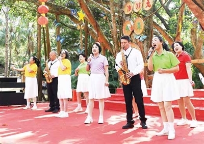市文艺志愿者惠演在金山植物公园精彩上演。谭文强摄