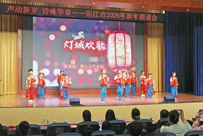 阳江日报讯(记者/官文婷)2月23日,由阳江市朗诵艺术协会主办的“声动新岁 诗咏华章”阳江市2026年新年朗诵会在阳东文化馆精彩上演。活动以“声”为媒,传颂经典,融合情景剧、合诵、快板、相声等多种艺术形式,并结合马年新春元素,为市民献上一场富有文化韵味的新春盛宴。