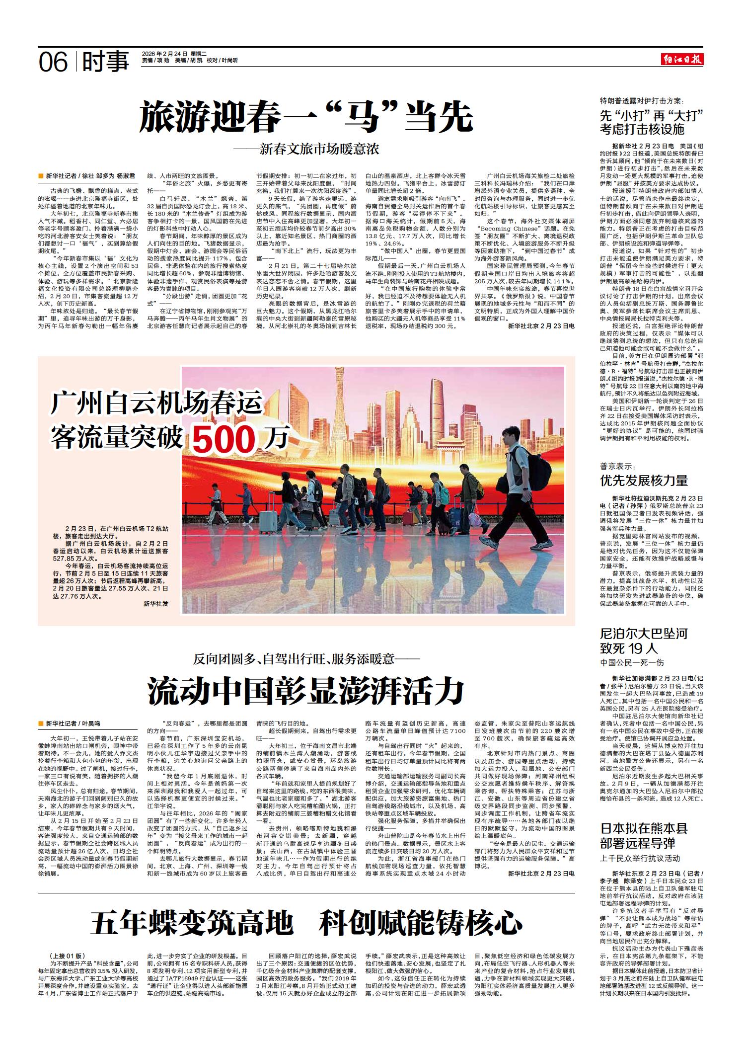 广州白云机场春运客流量突破500万