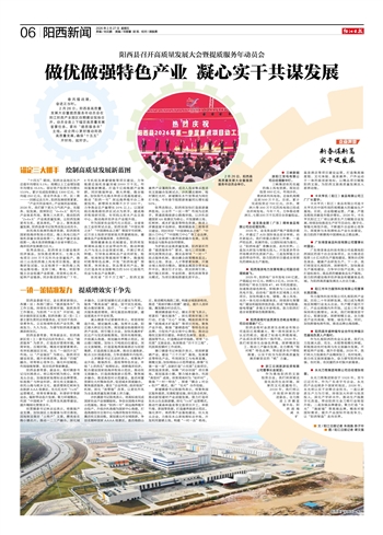 为护航企业高质量发展,阳西紧扣市委“提质服务年”要求,强化三项保障:深化政策找企业,落实县领导“一对一”挂点服务机制,推动惠企政策精准直达;强化土地、资金、人才等要素保障,开展全域土地综合整治,建强县属国企资本运作平台,落实引才计划;抓实招商引资,推行链主招商、专业招商、委托招商等多元模式,为项目落地搭建优质平台。