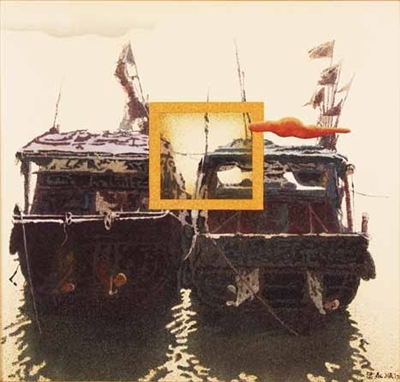 海边有云(漆画)梁永顺