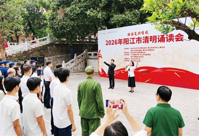 阳江日报讯(记者/曾宪雯)4月2日,“追寻·2026·清明祭英烈活动”暨2026年阳江市“强国复兴有我”清明诵读会在市区北山公园烈士陵园举行。我市各单位、团体及师生代表以庄严仪式缅怀革命先烈,用深情诵读赓续红色血脉。