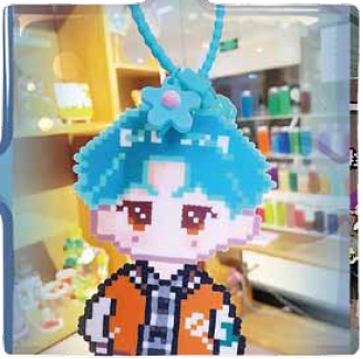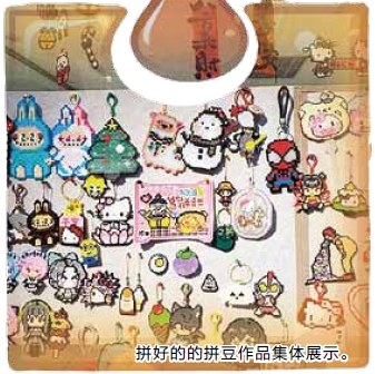 手作店工作人员悦悦介绍,拼豆是以不同规格的彩色塑料颗粒为原料,玩家借助钉板,按照图纸或自主创意排布图案,再通过加热工具将颗粒热熔定型,最终制成钥匙扣、冰箱贴、摆件、挂件等各类文创作品的DIY手工。“周末店里基本座无虚席,很多顾客都会提前预约。目前店里有多款图纸,涵盖动漫、游戏、本地文化等多个系列,还能提供私人定制服务,满足不同顾客的需求。”她补充道。