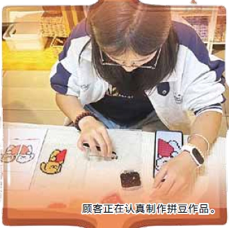 顾客正在认真制作拼豆作品。