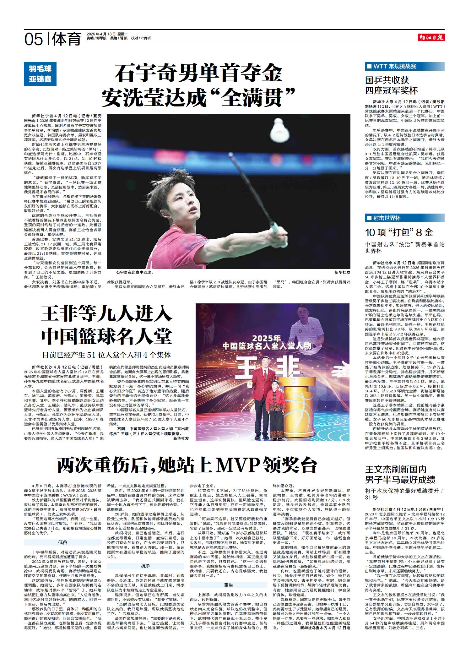 石宇奇男单首夺金 安洗莹达成“全满贯”
