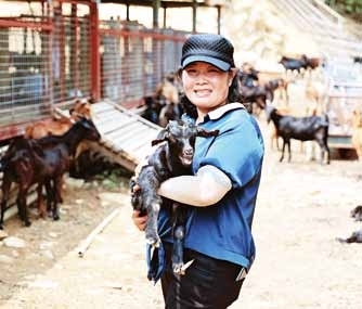 基地负责人林月婷在羊舍照料黑山羊。