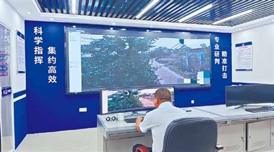 一号警务室内,工作人员通过监控设备对边境一线进行巡查。