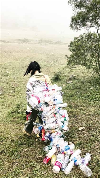 提及女孩和驴友们“捡垃圾”的初衷,林健豪提到,驴友们都是阳江本地人,要维护好自己城市的形象;其次,作为户外人也有爱护环境的责任。于是,驴友们用背包里的绳子,想出了将空瓶子串起来带下山的方法。