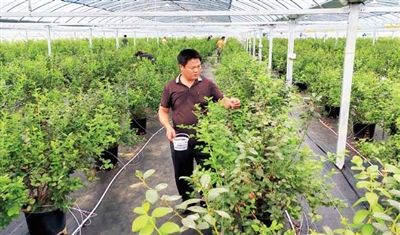 市民游客在蓝莓园里采摘蓝莓。谭文强 摄