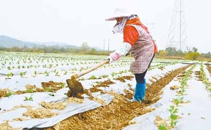 上图:农户在盘活的土地上种下蔬菜。陈建华 摄