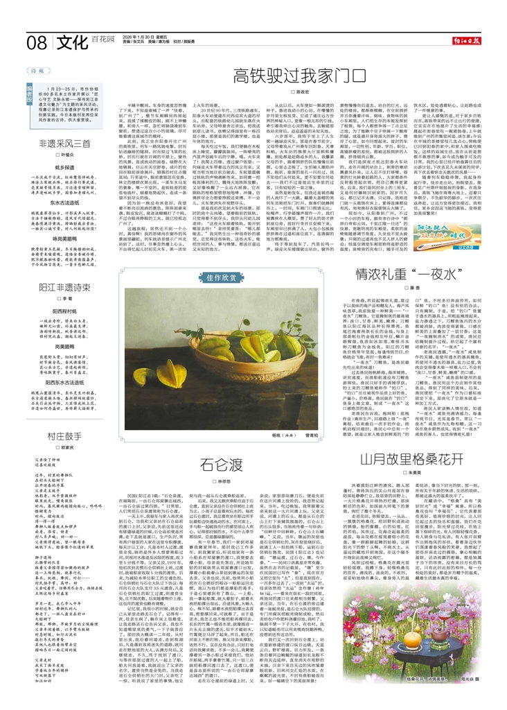 - 阳江非遗诗束 □ 李 菊 阳西程村蚝 一域出奇珍,修来白玉身。 嫩鲜尤沁齿,补益最生津。 海韵传新技,蚝香诱远邻。 程村凭此盛,潮起又迎春。 岗美腊鸭 琵琶舒玉骨,切切有回声。