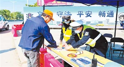 该服务点的交警已经进入“春运状态”。交警分发宣传单向群众普及春运期间的行车安全知识,并向不戴头盔和头盔不符合标准的摩托车驾驶员免费提供新头盔。另外,每一辆驶过此处的7座(含7座)以上载客车辆,民警都会依法拦停,然后登车检查,确保每位驾驶员都携带了必要的证件,并核对客车上的安全带、灭火器、安全锤是否配备齐全,待核查无安全隐患后再放行。
