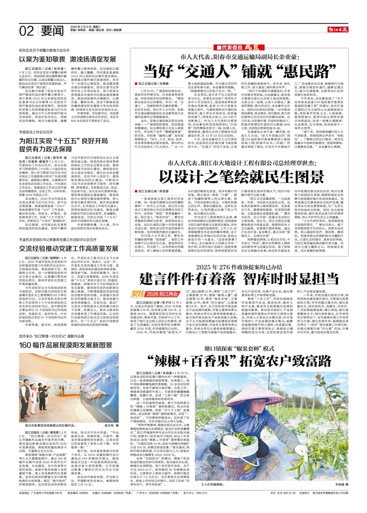- 建言件件有着落 智库时时显担当 聚焦2026阳江两会 阳江日报讯(记者/陈子玲)2月2日,记者从市政协了解到,2025年共收到提案276件,经审查立案156件,立案率56.5%。提案紧扣阳江经济社会发展实际,聚焦市委、市政府