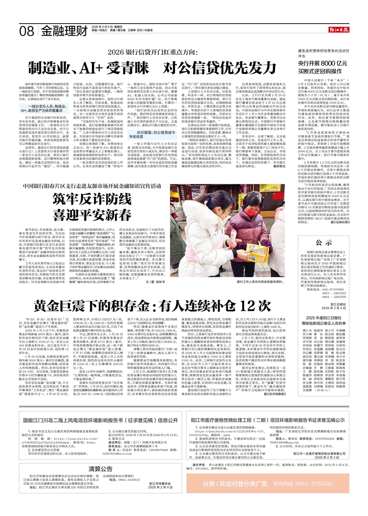 - 制造业、AI+受青睐 对公信贷优先发力 每年春节前后都是银行传统的信贷投放高峰期。今年1月份刚刚过去,从一线到总行层面,对于信贷投放都有哪些考量的重点?哪些领域最受青睐?连日来,记者就此进行了多方走访。 一线分支行人员:制造业、AI
