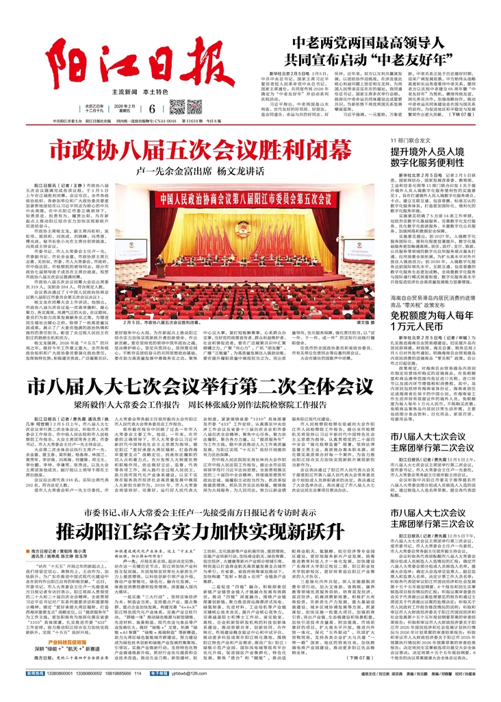 - 推动阳江综合实力加快实现新跃升 ■ 南方日报记者/黄韬炜 南小渭 通讯员/姚寿高 陈文婷 敖玉萍 “站在‘十五五’开局之年的新起点上,我们将坚定信心、乘势而上,主动作为、加快跃升,为广东在推进中国式现代化建设中走在前列作