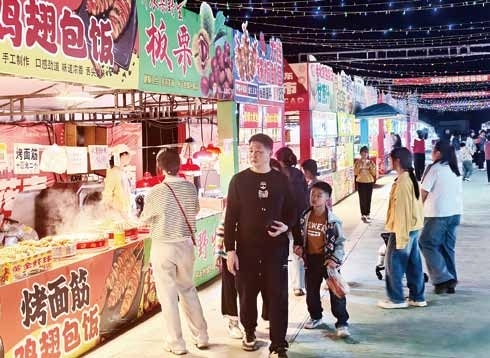 除了满城璀璨的灯饰,丰富多彩的线下活动更是将新春氛围推向高潮。2月6日晚,阳东迎春花市在竹篙山森林公园南广场正式开幕。记者在现场感受到扑面而来的热闹气氛,充满“马”年元素的装饰点缀公园各处,主入口处小吃摊位香气四溢,吸引了众多市民驻足。不远处,一位身着唐代服饰的表演者立于特制底座上,随音乐优雅摆动进行不倒翁表演,并不时向围拢的市民游客派发新春红包与优惠券,引来阵阵欢笑。