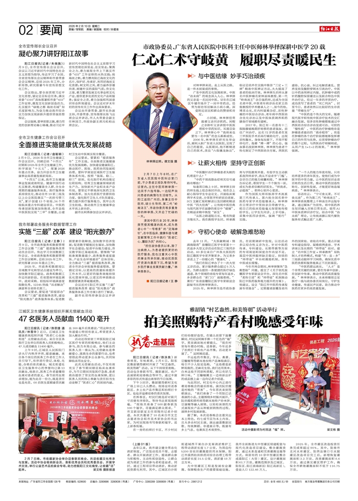 - 全面推进实施健康优先发展战略 阳江日报讯(记者/盘聪颖)2月9日,2026年全市卫生健康工作会议召开,回顾总结“十四五”时期和2025年全市卫生健康工作,科学谋划“十五五”,部署2026年重点任务,奋力开创全市卫生健康事业高质