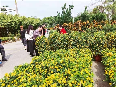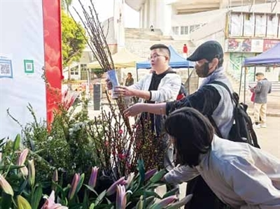 除了传统年花,银柳、桃花等水养花,以及单价较低兼具节日寓意与观赏价值的小盆栽、小盆花,也受到市民喜爱,购买人群覆盖各个年龄段。花市负责人巫先生介绍,今年花市涵盖花桔区、年货区、美食区、儿童区等四大特色主题区,还有“打卡”的点位,供大家拍照,并于7日至12日穿插舞台表演,让花市成为集购年花、办年货、吃喝玩乐于一体的打卡地,增强市民逛花市的体验感。