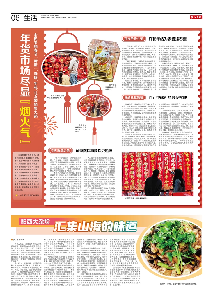 新春将至,年味愈浓。红火的年货市场,不仅承载着阳江人对新春的美好期许,更彰显着城市的烟火气与活力。从红彤彤的新春饰品,到争奇斗艳的年花绿植,再到香甜美味的礼盒零食,一件件年货串联起新春的喜悦,也勾勒出阳江人幸福美满的生活图景。