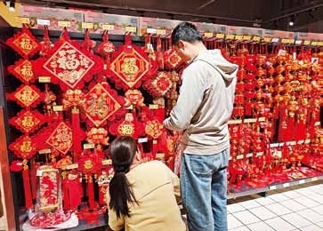 “千门万户曈曈日,总把新桃换旧符。”贴春联、挂福字、摆吉祥摆件,是阳江人迎接新春不变的传统。在市区太傅路,新春饰品专区早已被打造成一片“红色海洋”,春联、挂件、摆件等新年装饰整齐陈列,不少市民驻足挑选,精心为家中添置新春“红妆”。