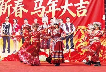阳江日报讯(记者/陈海涛)2月20日大年初四,天气晴好。江城区双捷镇乐安村的东门苗家小寨年味正浓,苗族村民载歌载舞迎客来。寨门前,车辆陆续驶入停车场内,游客走进寨中体验苗家特色风俗。截至当天,苗家小寨春节假期已接待游客上万人次。