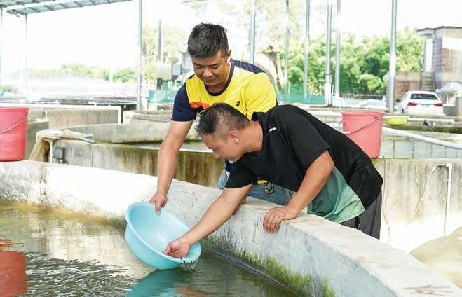近日,记者驱车行驶在阳春市潭水镇的乡道上,目光所及是连片的一方方水塘。春日的阳光下,塘面泛着粼粼波光,戴着草帽的农户蹲在池畔,仔细观察鳜鱼亲本的生长状态。“3月初就要开始孵化鱼苗了,眼下正是亲本起卵的关键期,得盯紧些。”农户李伟说。