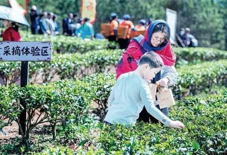 亲子采茶。 张晓山 摄