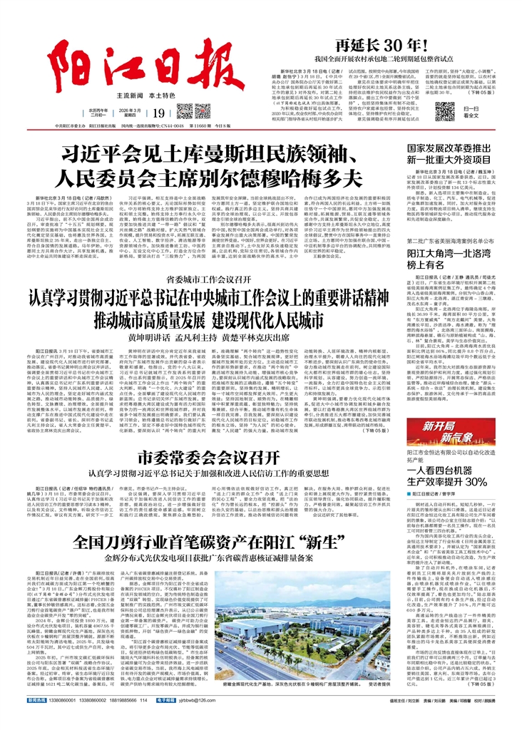 - 全国刀剪行业首笔碳资产在阳江“新生” 阳江日报讯(记者/许倩)“广东碳排放权交易机制近年日益完善、走在全国前列,很高兴我们在减碳方面成为阳江第一个吃螃蟹的企业!”3月18日,广东金辉刀剪股份有限公司(以下简称“金辉公司”)分布式光伏发