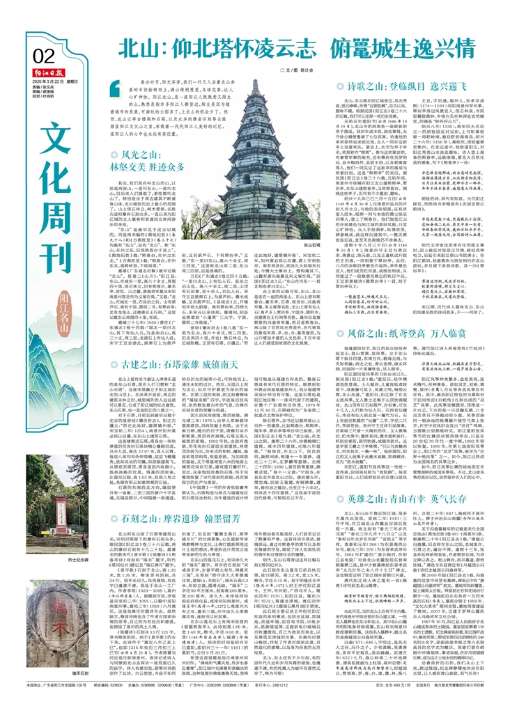 □ 文/图 陈计会 春分时节,阳光芬芳,我们一行几人沿着北山参差的石径拾级而上,满山绿树葱茏,鸟语花香,让人心旷神怡。阳江北山,是一座阳江人既熟悉又陌生的山,熟悉是指许多阳江人都登过,陌生是因