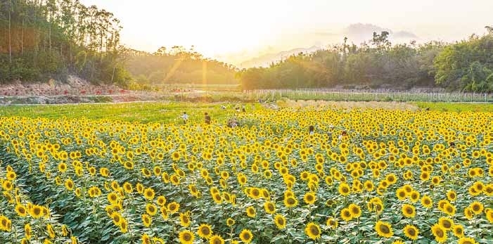 右图:阳西县织乑镇牛岭村的向日葵花海吸引不少市民前去拍照打卡。 梁文栋 摄