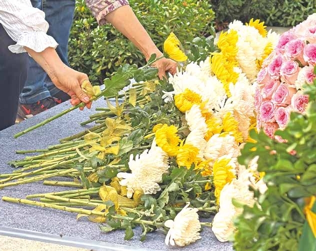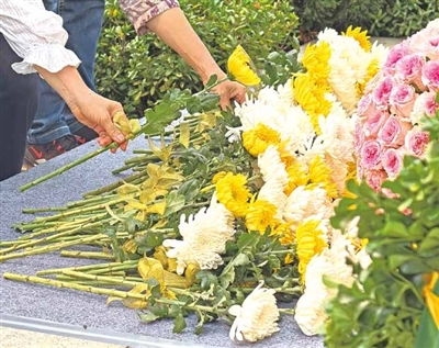 当天,纪念园内庄严肃穆,全体人员集体向捐献者默哀致敬,共同缅怀追思捐献者。随后,人们排队依次向捐献者纪念碑敬献鲜花。人群中,时不时见到红了的眼眶,也时不时传出抽泣的声音。器官捐献者家属对逝者的思念从未停止。