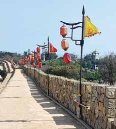 站在一处城垛上,一排印了“戚”字的黄色旌旗迎风招展。凝神沉思片刻,我耳边仿佛回响着战马的嘶鸣声和兵器的搏击声,眼前仿佛浮现出士兵们披甲执剑、坚守城墙的英勇身影。这一切,都如此真实,仿佛触手可及。抚今追昔,渐渐地,心头涌起一股浓烈的崇敬之意。