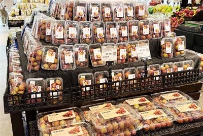 左图:超市上架的盒装智利西梅。