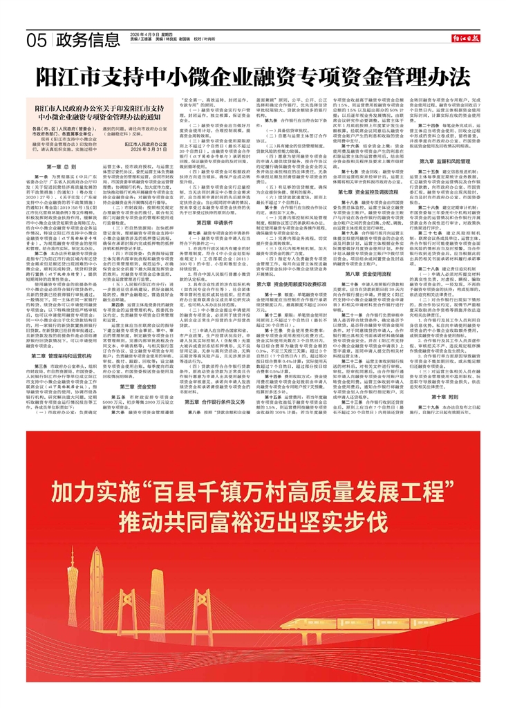 - 阳江市人民政府办公室关于印发阳江市支持中小微企业融资专项资金管理办法的通知 各县(市、区)人民政府(管委会),市政府各部门、各直属事业单位: 现将《阳江市支持中小微企业融资专项资金管理办法》印发给你们,请认真组织实施。实施过程中遇到的问题,请径向市政府办公室(金融稳定
