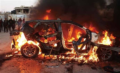 这是4月8日在加沙城拍摄的遭以军空袭后起火的车辆,车内一名半岛电视台记者遇难。据卡塔尔半岛电视台8日报道,该台记者穆罕默德·维沙在加沙地带北部遭以色列无人机袭击身亡。新华社发