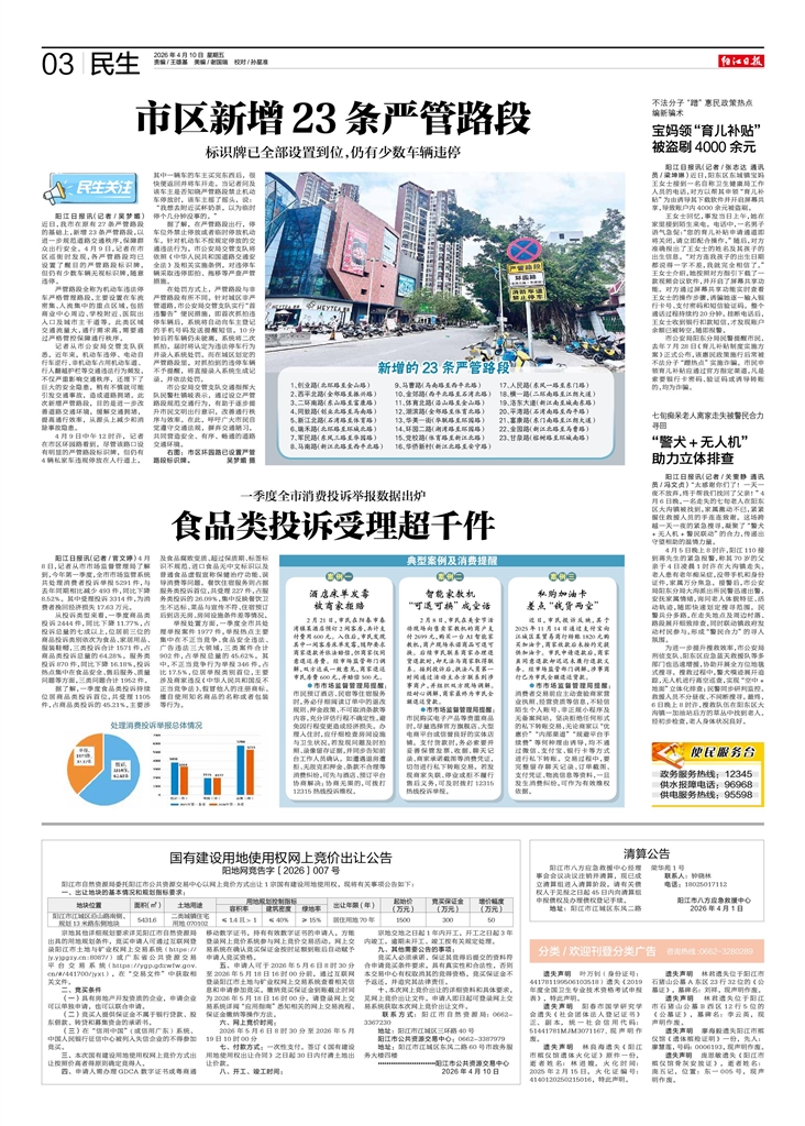 - 市区新增23条严管路段 民生关注 阳江日报讯(记者/吴梦媚)近日,我市在原有27条严管路段的基础上,新增23条严管路段,以进一步规范道路交通秩序,保障群众出行安全。4月9日,记者在市区巡街时发现,各严管路段均已设置了