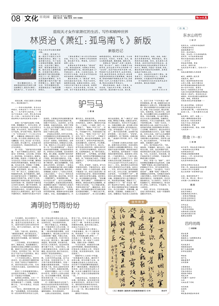 - 林贤治《萧红:孤鸟南飞》新版 阳江籍著名诗人、学者林贤治的传记代表作《漂泊者萧红》,更名为《萧红:孤鸟南飞》,于2026年3月由人民文学出版社重新出版。 《萧红:孤鸟南飞》是一部关于中国天才女作家萧红的传记。萧红一生追求爱