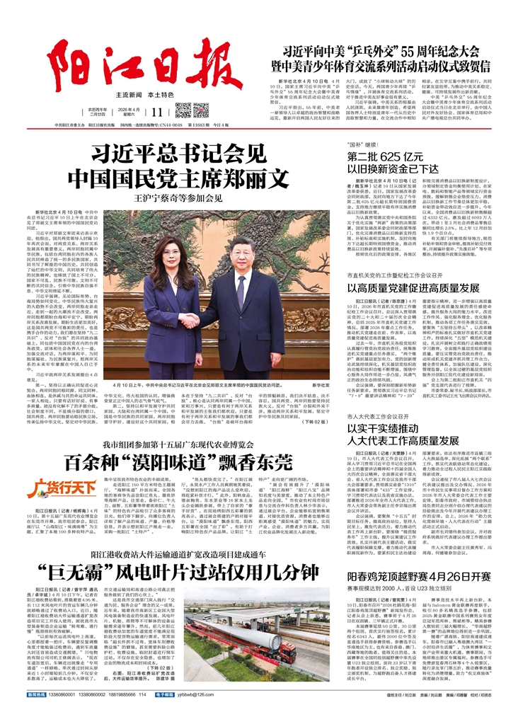 阳江日报讯(记者/杨辉南)4月10日,第十五届广东现代农业博览会在东莞市开幕,我市组团参会。阳江展厅以 “山海阳江·味满南粤”为主题,汇聚了本地100多种农特产品,集中呈现我市特色农业的丰硕成果。