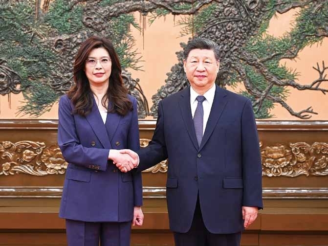 4月10日上午,中共中央总书记习近平在北京会见郑丽文主席率领的中国国民党访问团。新华社发