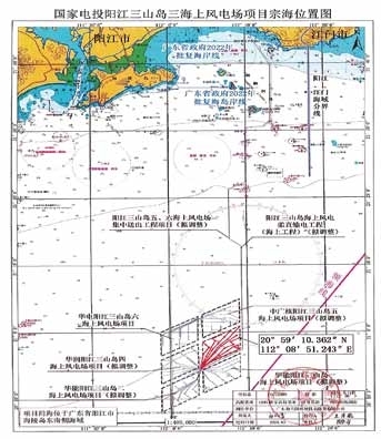 广东阳江电投聚能风电有限公司拟在阳江市海陵岛南侧海域建设国家电投阳江三山岛三海上风电场项目,现进行海域使用前公示,拟申请用海面积403.7995公顷(具体范围和位置见宗海位置图),有关事宜公示如下: